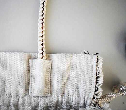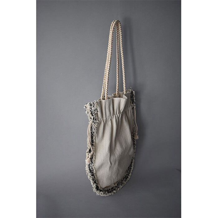 kimono ヴィンテージ帯 トートバッグ【白/フリンジ付き】