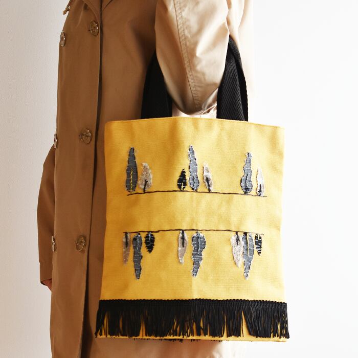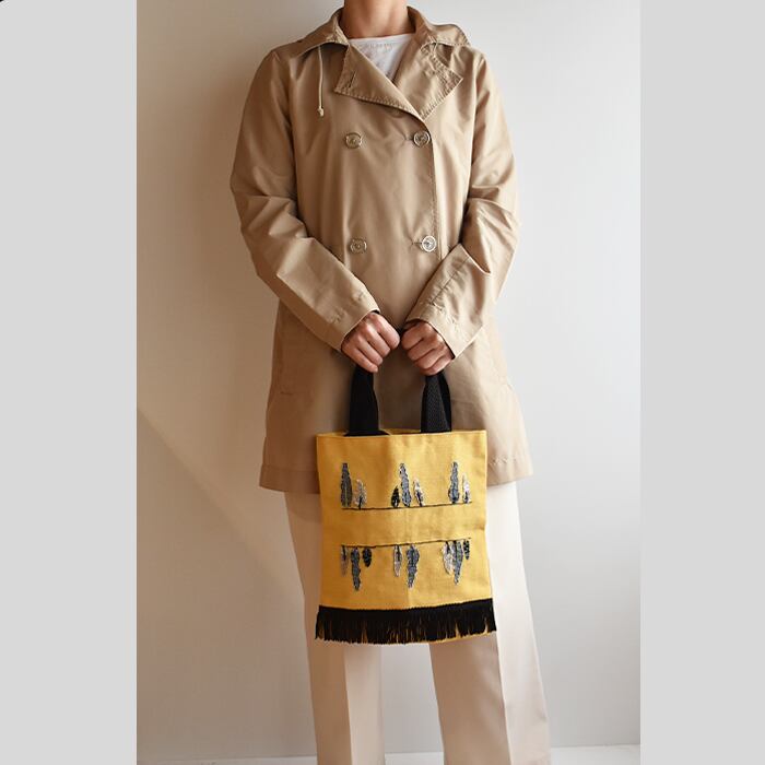 kimono ヴィンテージ帯 トートバッグ【黄色/刺繍入り】